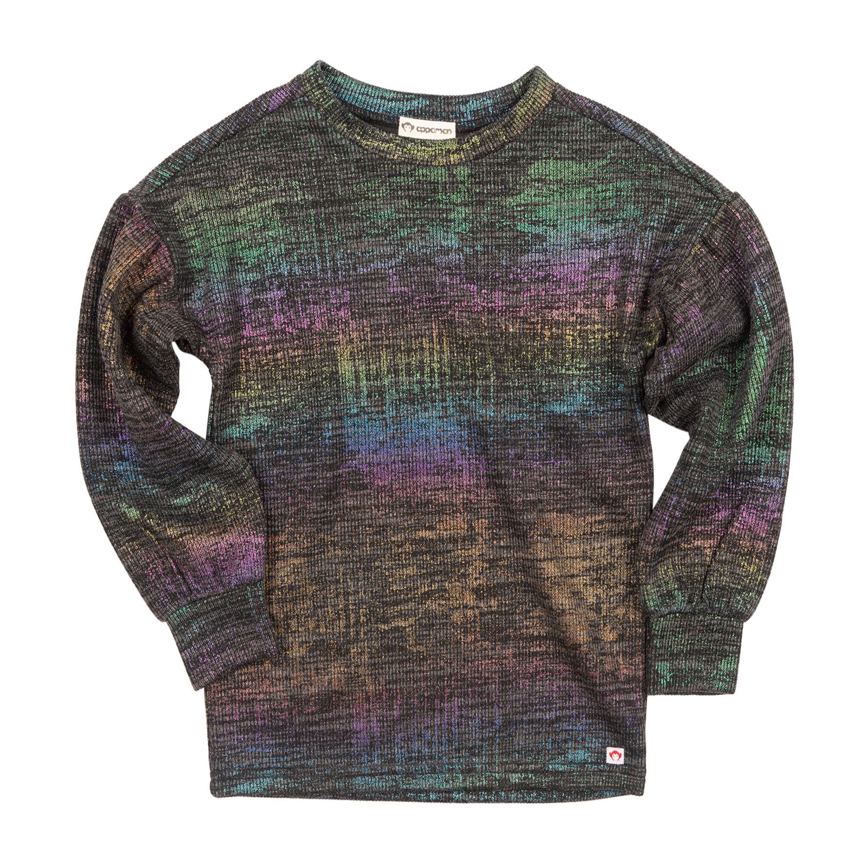 Überschnittene Schultern und geraffte Ärmeleinsätze verleihen diesem superweichen Pullover-Sweatshirt eine coole, lässige Passform. Mit sichtbaren Rohnähten und Regenbogen-Akzenten.