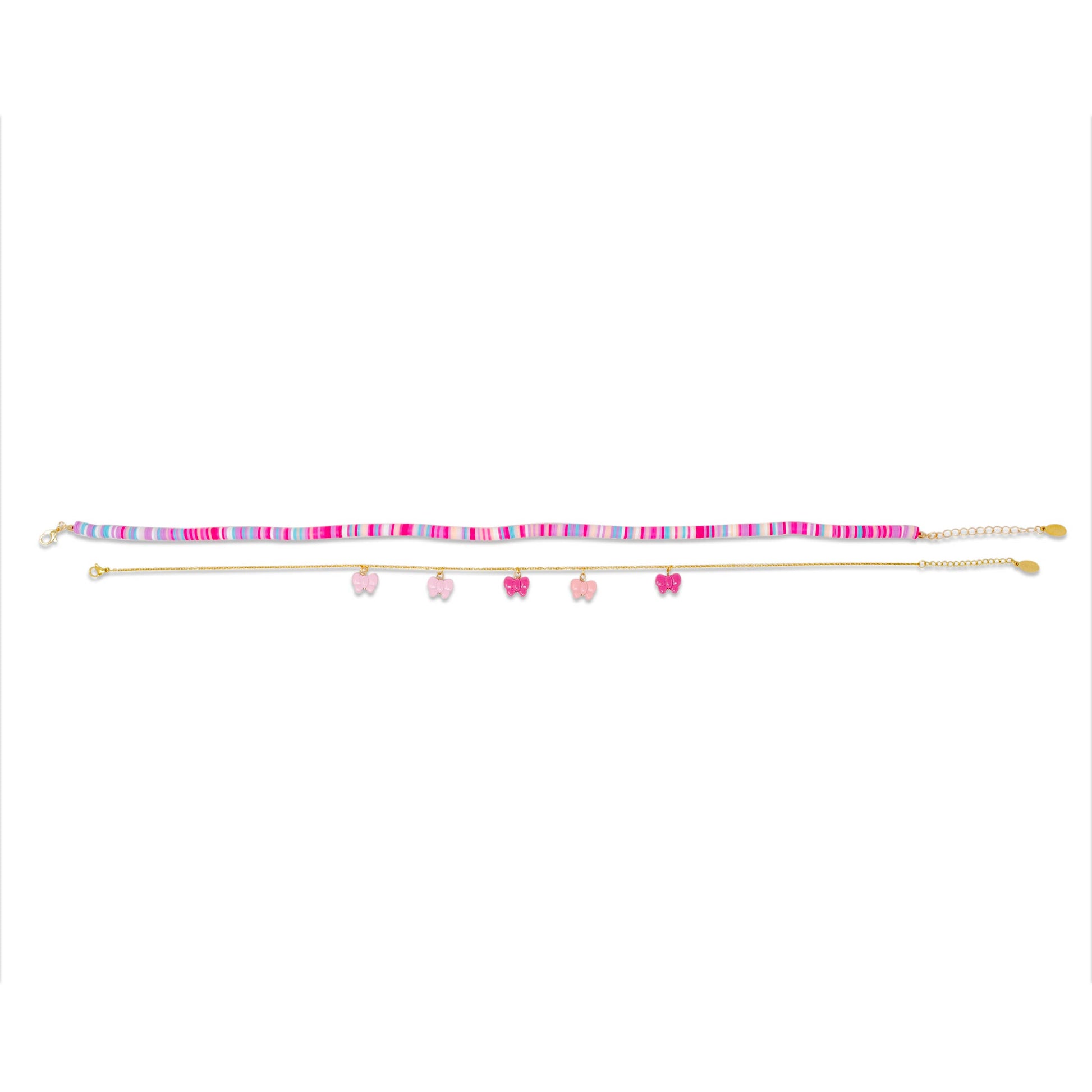 A delightful duo designed to double the joy of accessorizing! This charming set features two uniquely fun necklaces that are perfect for mixing, matching, and sharing. The first necklace showcases vibrant, colorful disks that add a playful pop to any outfit, while the second necklace is adorned with a whimsical array of multi-charms, each telling its own story. Together, they create a world of imagination and style, making this set a must-have for any young fashionista. Whether it's for a special occasion or everyday sparkle, this set is sure to become a favorite in their jewelry collection!