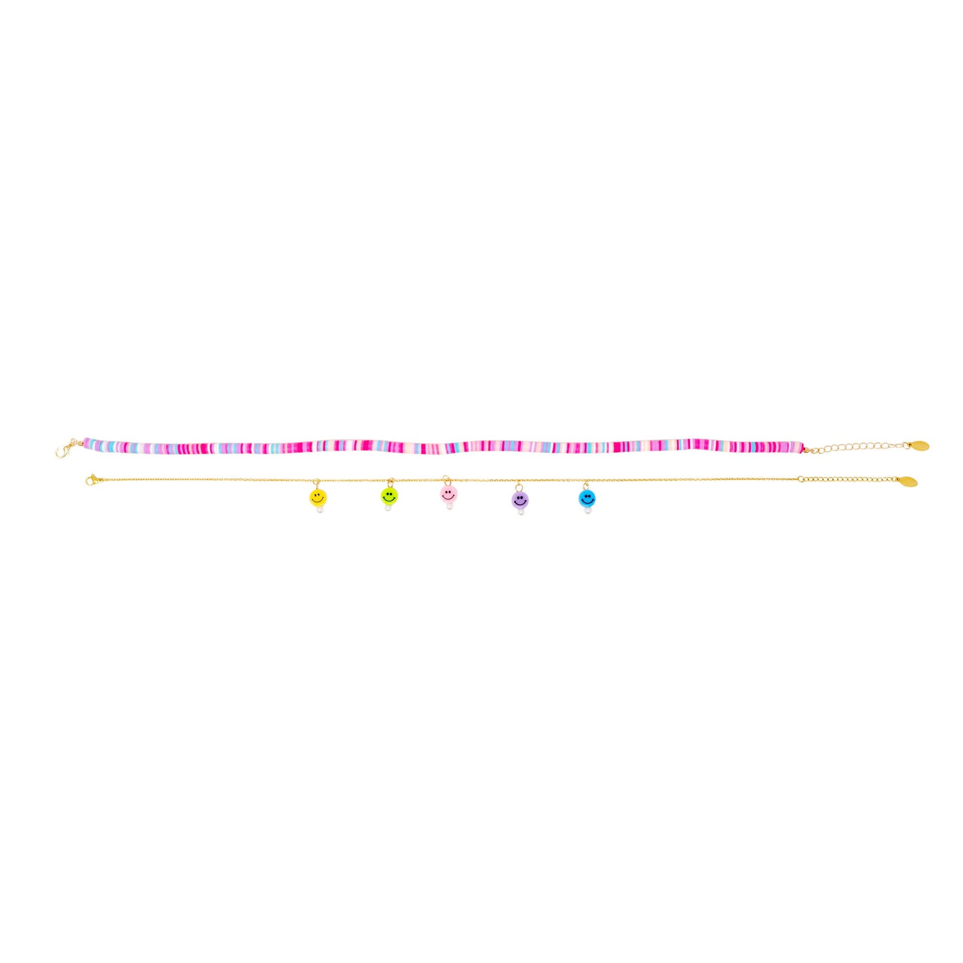 Girl's Colorful Disk Necklace & Charm Duo - Happy Faces