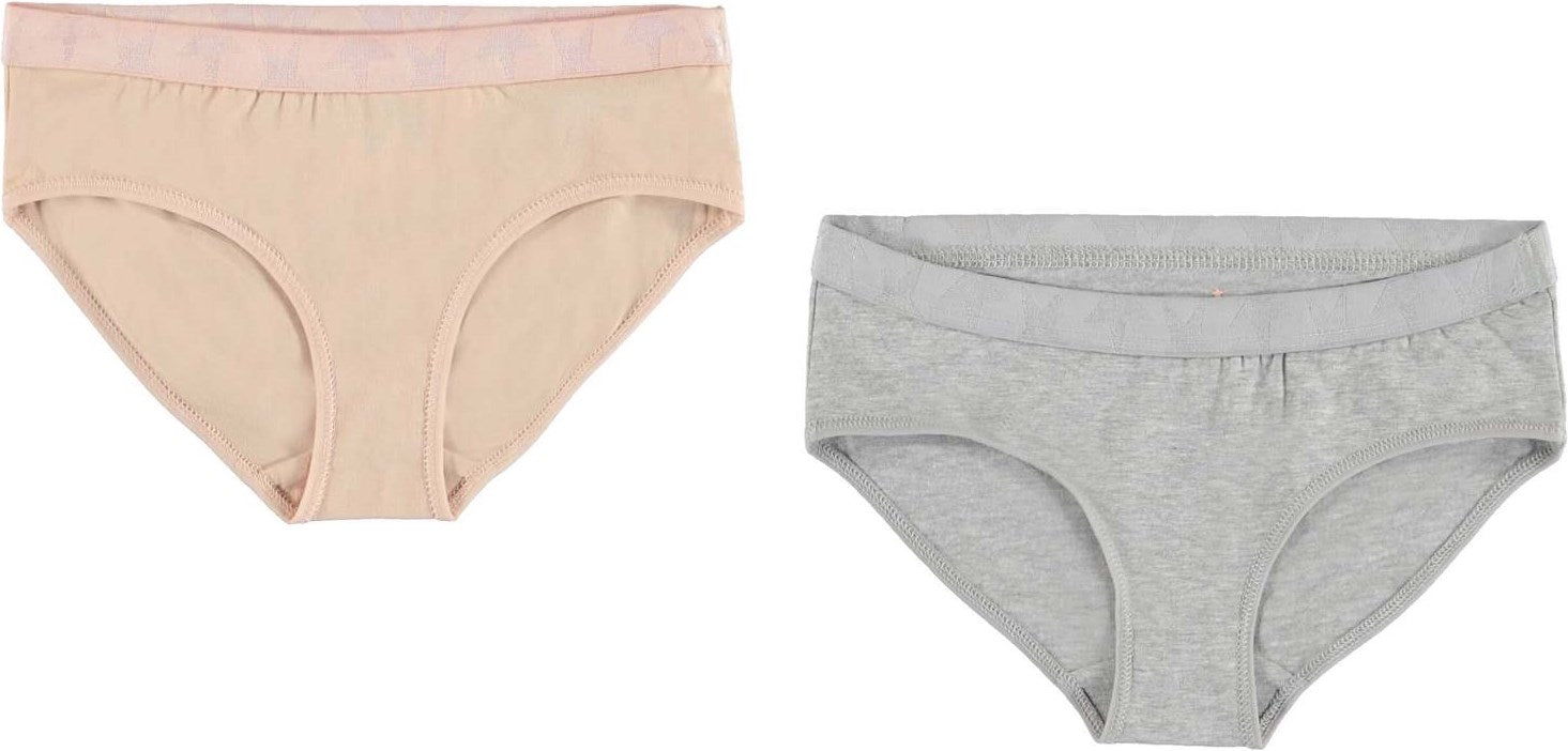 Slip mit Gummirand mit Sternen. Diese Jana gibt es im 2er-Pack in Rosa und Grau. Die Unterwäsche kommt in einem kleinen Stoffbeutel, der sich gut für unterwegs wiederverwenden lässt.