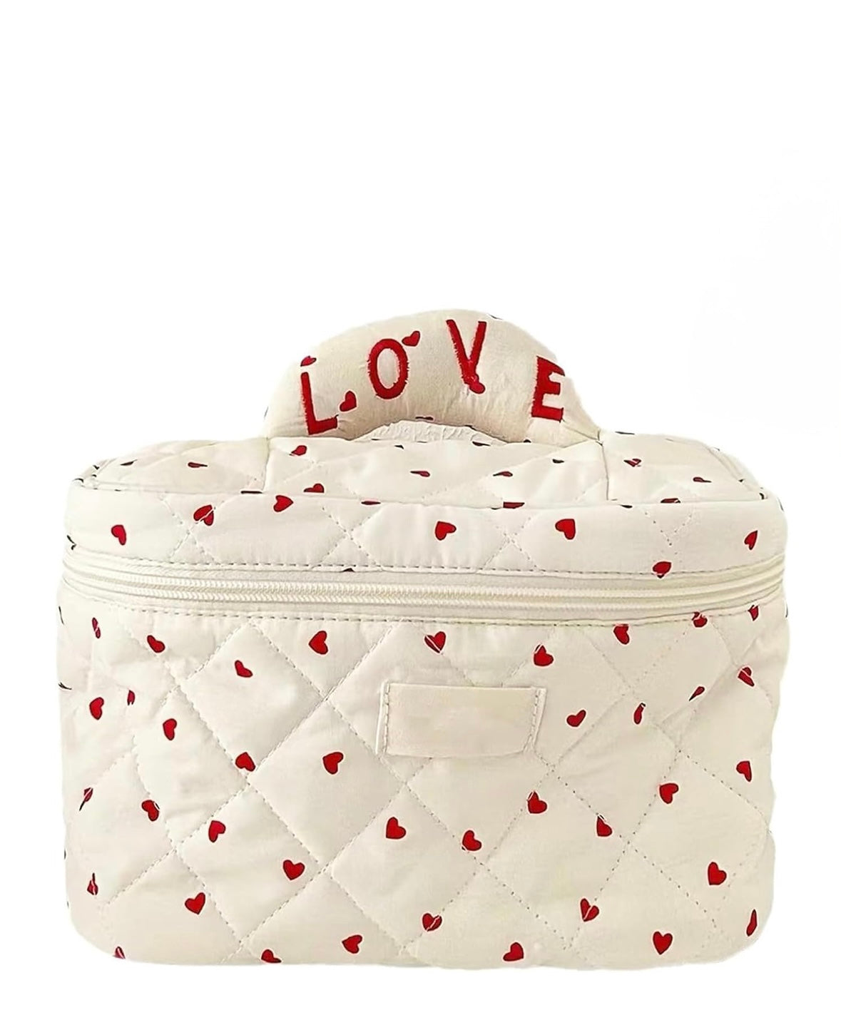 Quilted Cotton Cosmetic Train Case | Love Hearts
