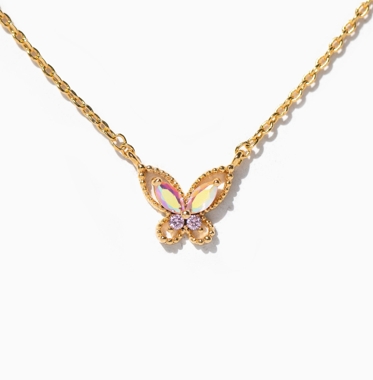 Float Like A Butterfly Necklace — 18K Gold Plated Iridescent Butterfly Pendant