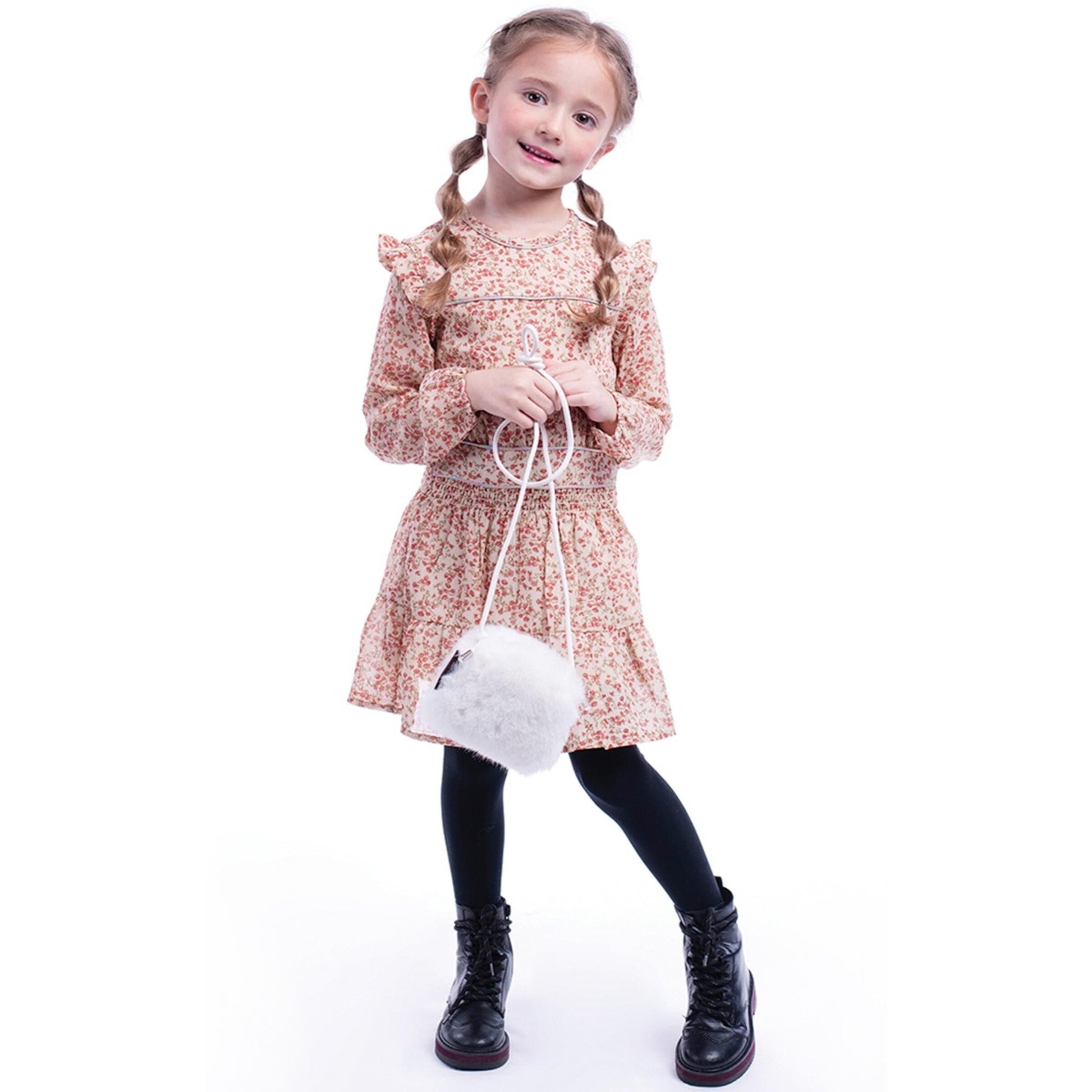 The Mindy dress is an adorable long sleeve dress featuring ruffled sleeves and cinched elastic waistline, perfect by itself or with leggings for extra warmth.