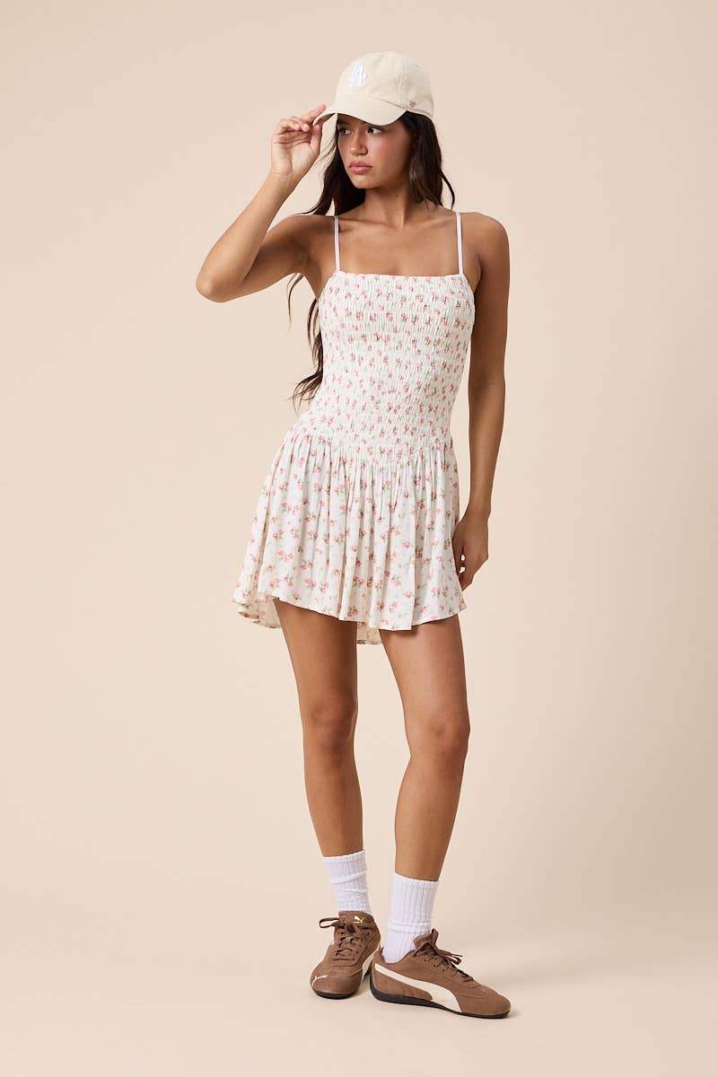 Soft, sweet, and so wearable — the Meadow Muse Mini is made for warm days and cute plans. Designed in a ditsy floral print with a square neckline, this dress features adjustable straps, a stretchy smocked bodice, and a subtle high-low hem for added movement. Finished with a back zipper and lightweight lining, it’s your new favorite throw-on-and-go dress.