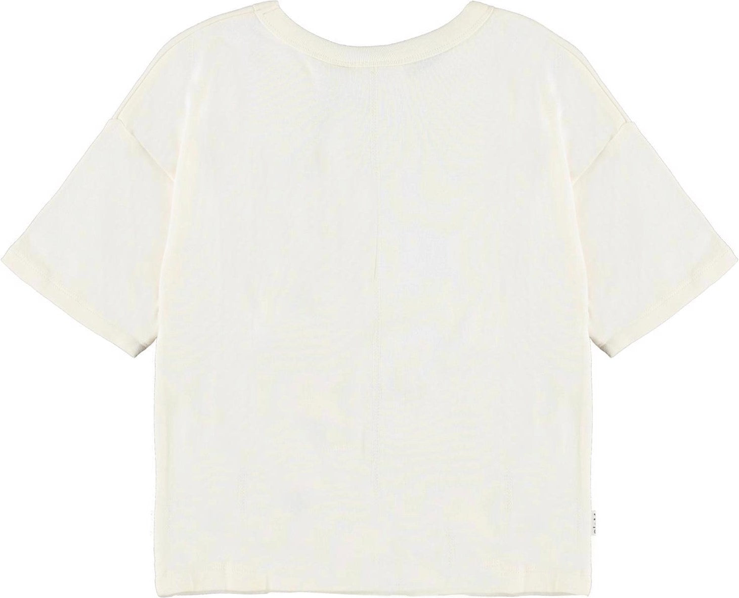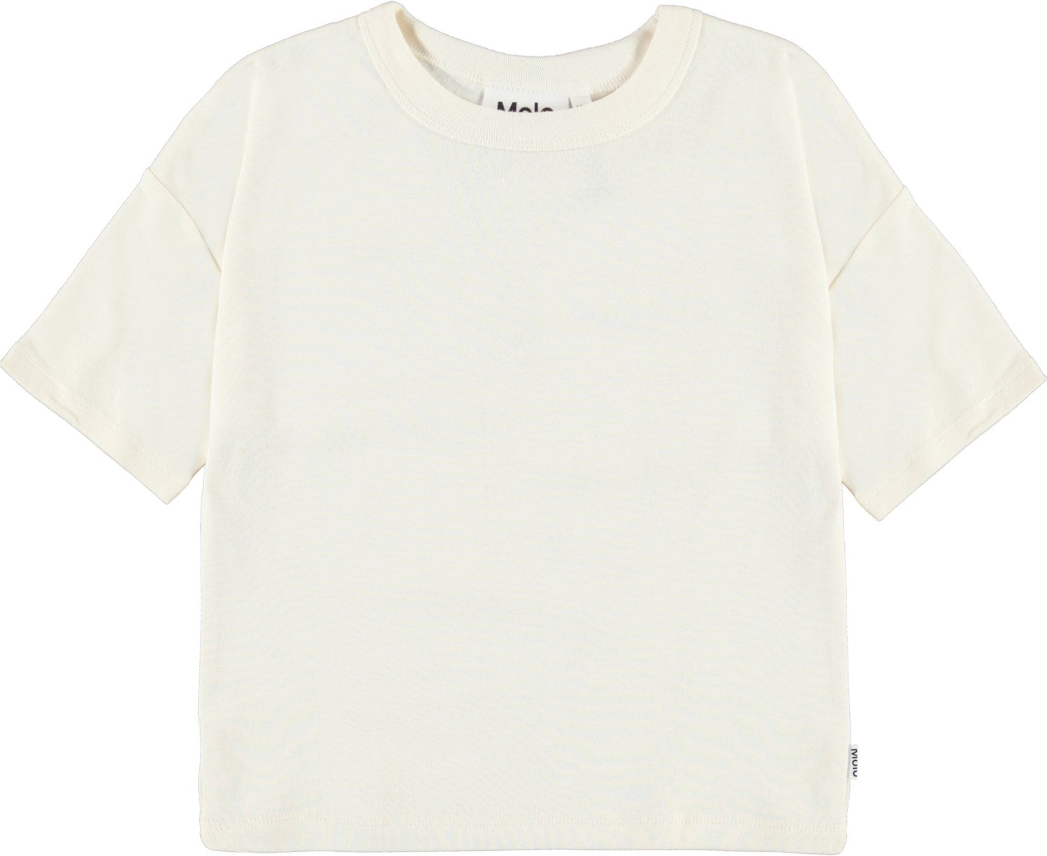 Rabecke is a wide, white t-shirt with drop shoulders.