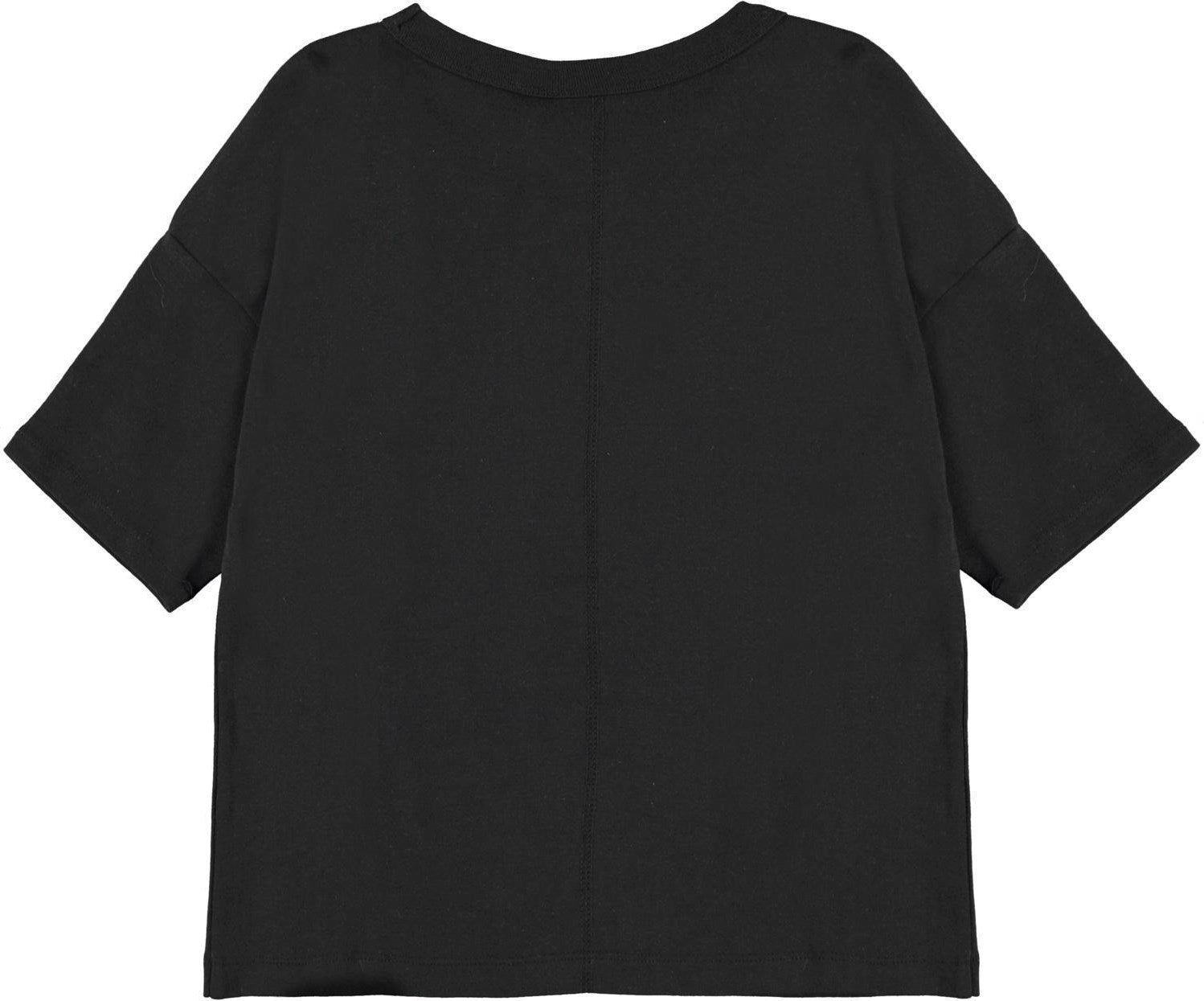 Rabecke is a wide, black t-shirt with drop shoulders.