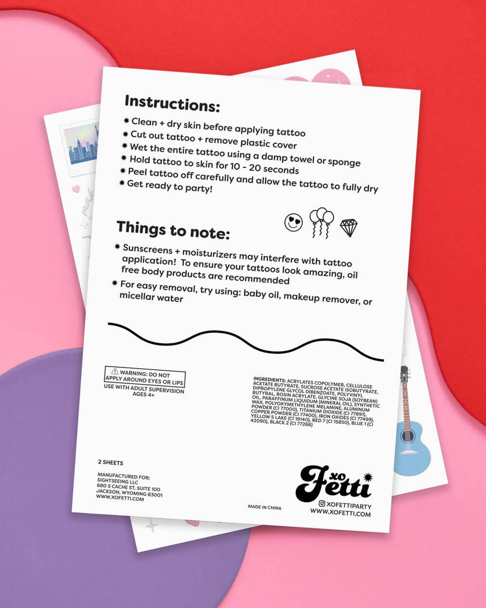 This set includes 50 full-color tattoos with iridescent foil accents, inspired by Taylor’s most iconic lyrics and birthday vibes. From “Cornelia St.” to “Older, but just never wiser,” these tattoos bring a playful, Swiftie-approved touch to any celebration.